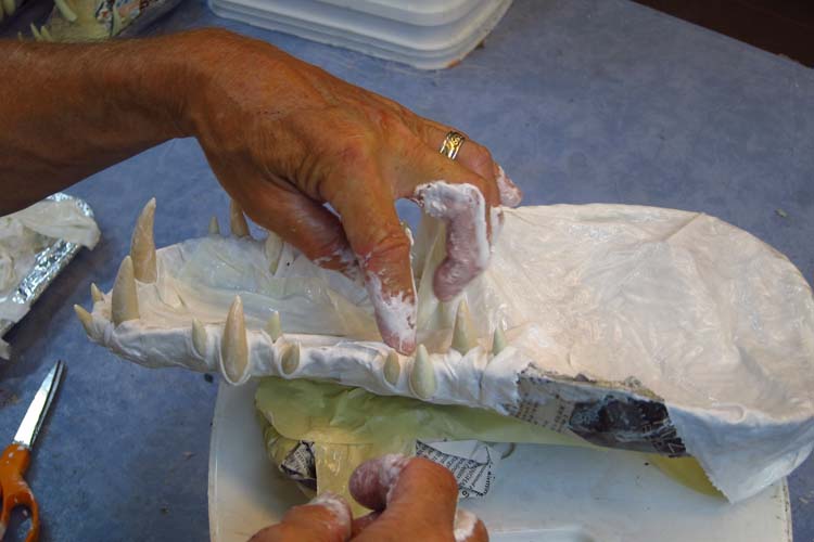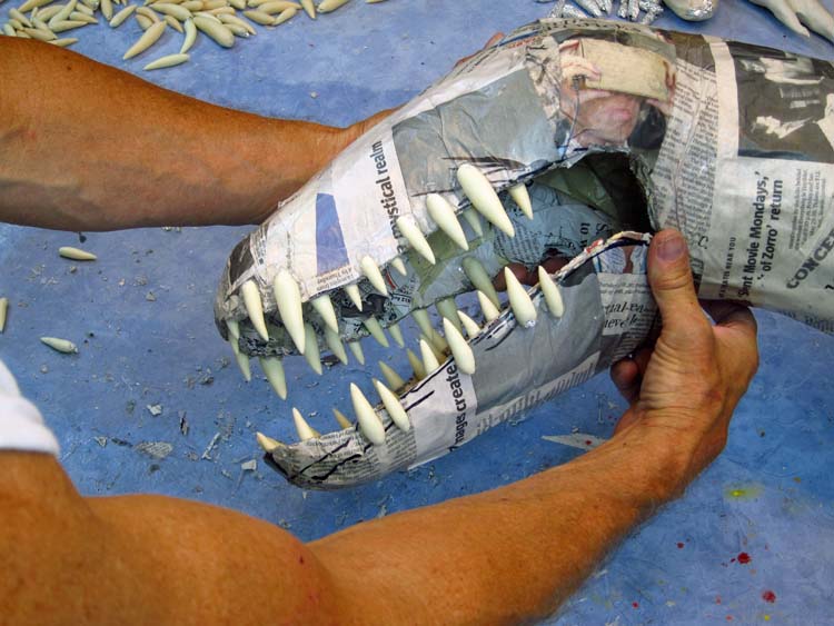Here are all the cloth mached jaws (I know, “mached” is not really a word)(and the phrase “cloth mache” is downright silly.  But that’s what dubbed it years ago, and it works.  So there.)