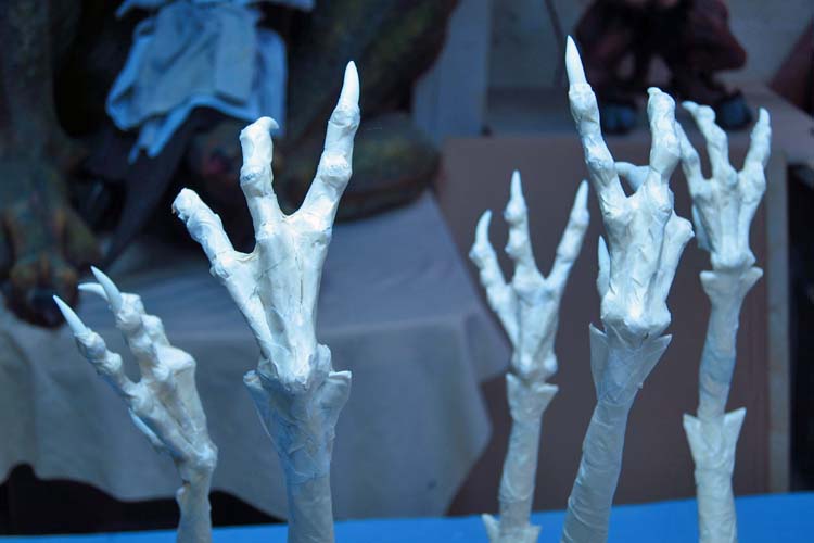 Meanwhile, I made the eight arms/legs.  I wanted basic bug arms but dragon-ish hands.  Here are the hands before cloth.