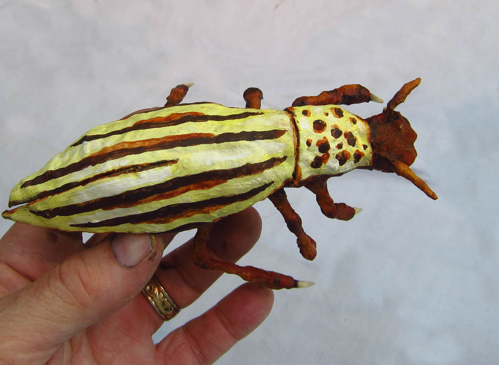 I decided that maybe the project just needed a little….something. So I made a little bug for the big bug to eat.  A beetle-ish sort of bug.