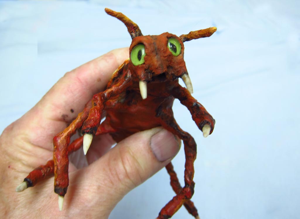 First off, Edible Bug is fantansicly cute, lil ‘ol eys all buggin out & distraught.As always the meticulous details are pretty impressive. I know the wings were dealing you fits, but thank you for slugging on & finishing it. .They have a kind of etherial, angry, sturdyness to them, so very unlike the wings on your dragons. I love getting your update emails, like a happy splash of creativity:)