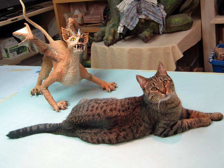 Hey Dan. Not getting your posts for some reason so I just saw this. I think it it is fabulous. Love that you combined the cat and the dragon. I really don’t see creepy. The face looks mischievous to me. Like she is up to something. Love to see your cat helpers in your videos and stills. I now have a rescue cat and he has become my constant companion. His loose fur that floats around my studio is what helps bind my mâché together. Lol! Have you decided on a new project?