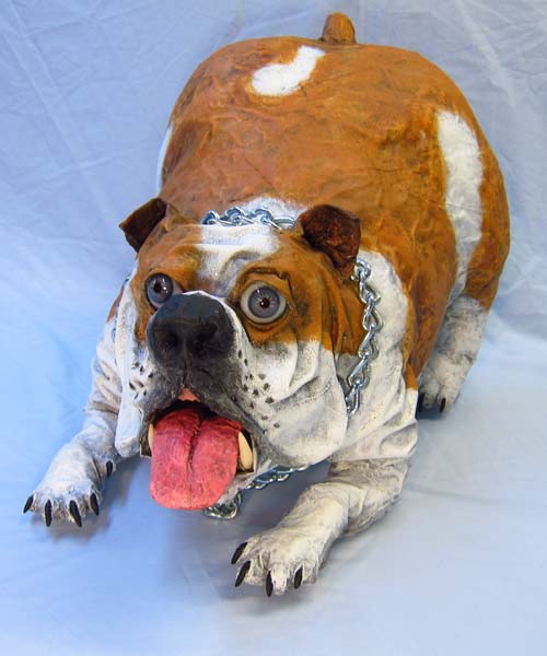paper mache bulldog- wipe face paper mache bulldog- blackwash back