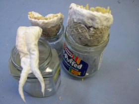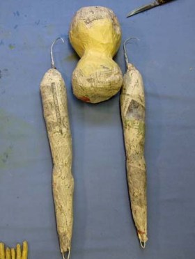 Here they are after putting on the cloth mache. And here they are again after painting.