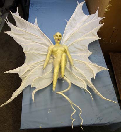 Hello Tina. Nice to meet you! Yes, plaster cloth is just too heavy. I use old bedsheets. Since everyone sleeps on sheets, if you ask around, you can probably get some from friends or relatives. I get mine at second hand stores like Goodwill. I like white because it works best for taking video, but it doesn’t matter if it has color since you will paint it anyway. The older and more worn the better. The oldest, most worn sheets are easiest to manipulate. So I usually buy the cheapest old sheets available. Unfortunately a few years ago, when buying second hand became more popular, I noticed that they quit stocking the older, most worn sheets. I learned that they were actually throwing them away! I was able to get someone who worked at the place to set them aside for me. I got quite a few that way. I dip the cloth in white glue. I prefer Elmer’s Glue-All. I get it at Lowe’s hardware by the gallon. I dubbed the process “cloth mache” back in 1984 with the publication of my first book, for lack of a better term. I use it as a “skin” on my projects once I’m done sculpting with the paper mache pieces. It is light and strong and allows for detail hard to get with just paper. And it’s great for wings. Good luck to you!