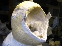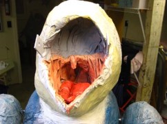 As you probably noticed, the jaws are made from the shells of a paper mache ball.