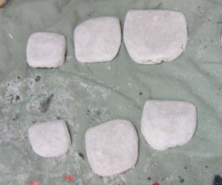 Back to the elephant. I don’t often use the stuff, but I used some commercial paper mache pulp for the elephant’s horns and toenails. I just added water to the mixture and fashioned some crude horns. In this photo the horns were dry but not sanded. The toenails were fairly easy to make. I just flattened a few little balls and let them dry. They got really hard. So hard in fact that I ended up using a belt sander to shape them. Here is a photo of the toenails after sanding. I didn’t want them to be perfect. After all, they are elephant toenails.