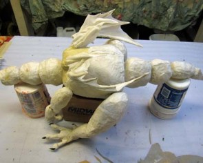 I draped some cloth between the fingers and then added my “cloth mache” to the rest of the wing. I finally had most of the pieces to put the little guy together.