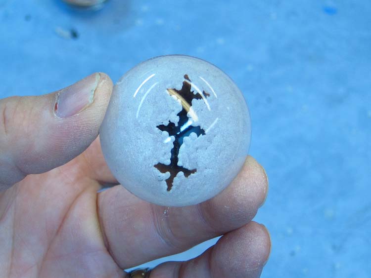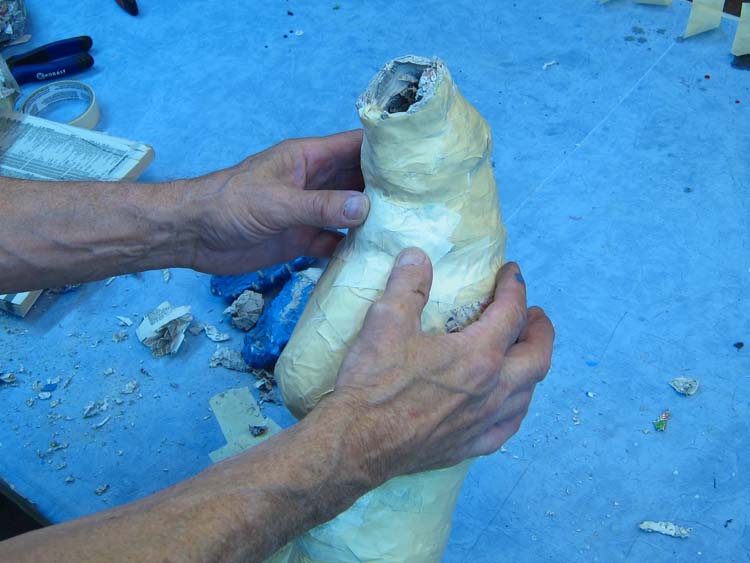 I pulled out the wads of paper that were inside (which I throw into a box to be re-mached later) leaving just the paper mache shells. I use these shells to make the jaws.