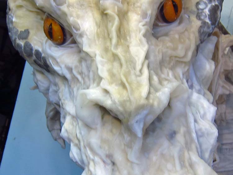 In contrast, I made a more evenly spaced tooth pattern for the white head. Overall, I think of the white dragon as the least wild (in appearance) of the five heads. I wanted the jaws to reflect that bias.